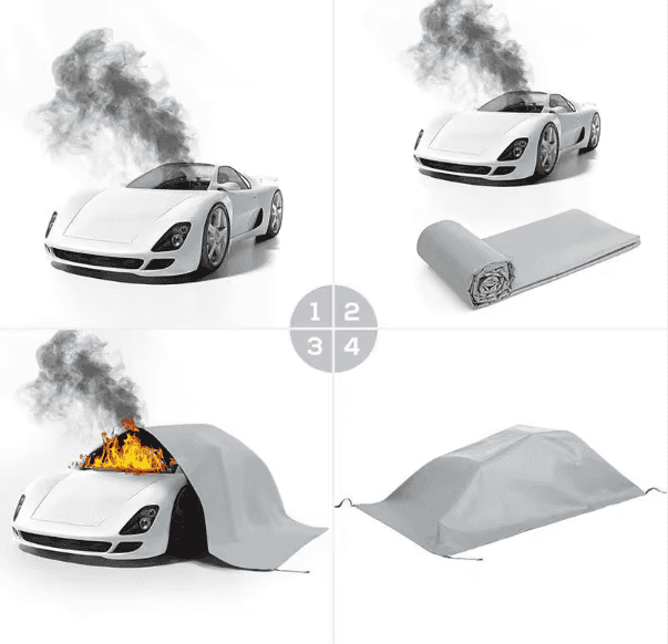 When draped over a fire, these fire blankets smother the fire by starving it of its oxygen supply. The fire blankets can also be used to wrap around a person whose clothes are on fire. Placing the blanket on the heat source will help put out the fire. However, it is very important to follow all health and safety procedures and call the fire brigade.