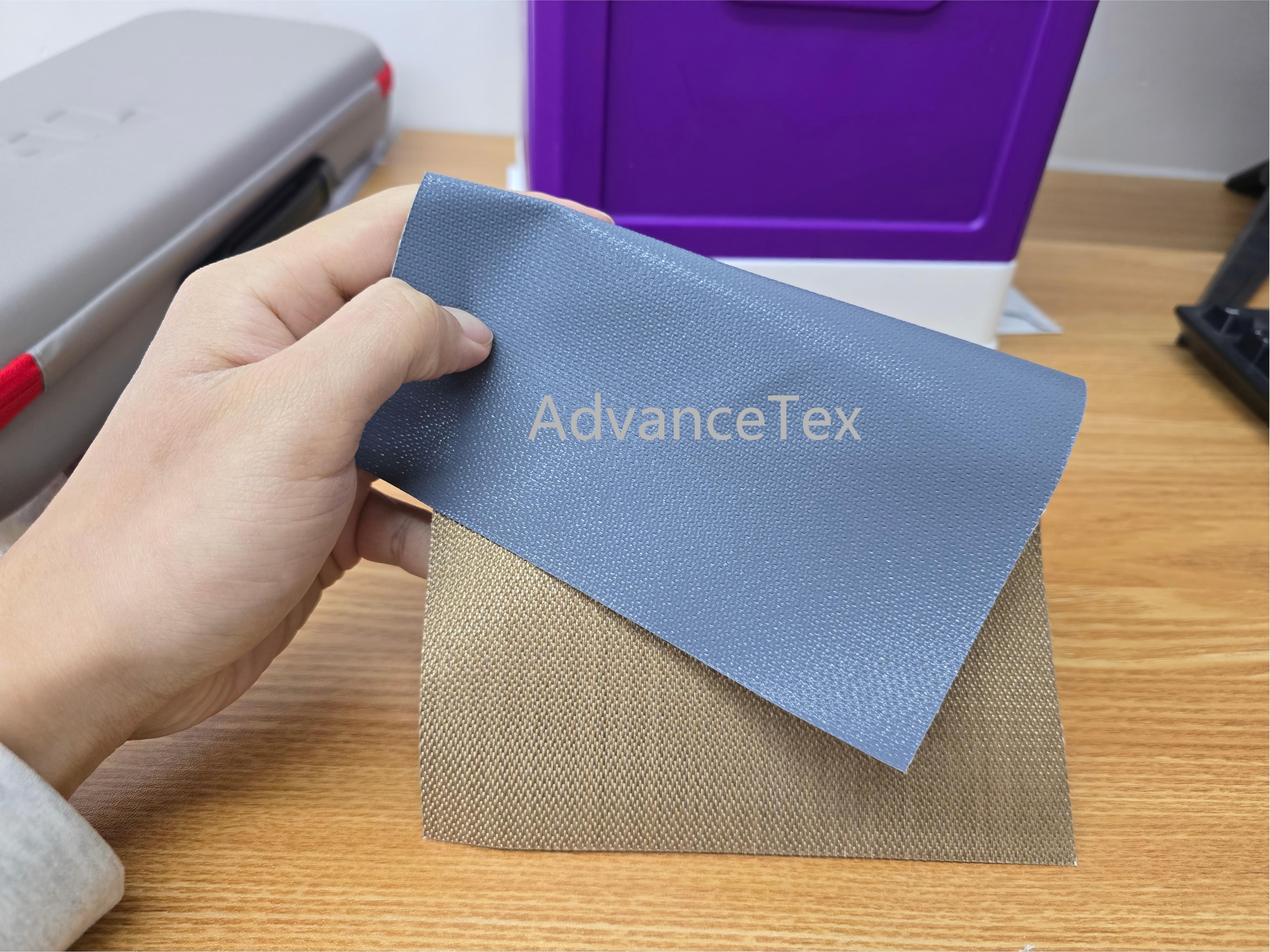 This specific 003 variant of our gray single-sided PTFE fabric features a distinct slate blue-gray coating. Engineered with a targeted weight of 580 g/m², the uncoated reverse side ensures optimal flexibility, grip, and ease of handling during the industrial sewing processes required for custom removable insulation jackets.
